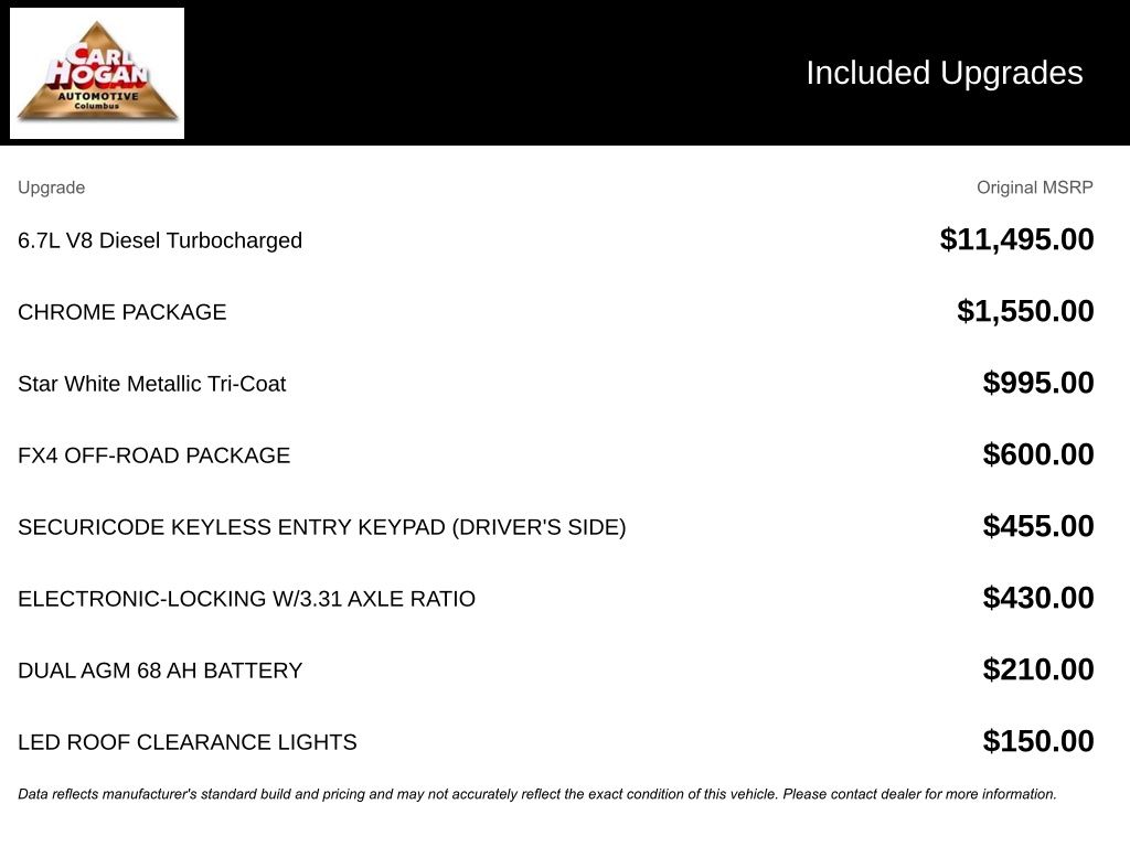 ⢠6.7L V8 Diesel Turbocharged (Power Stroke) engine